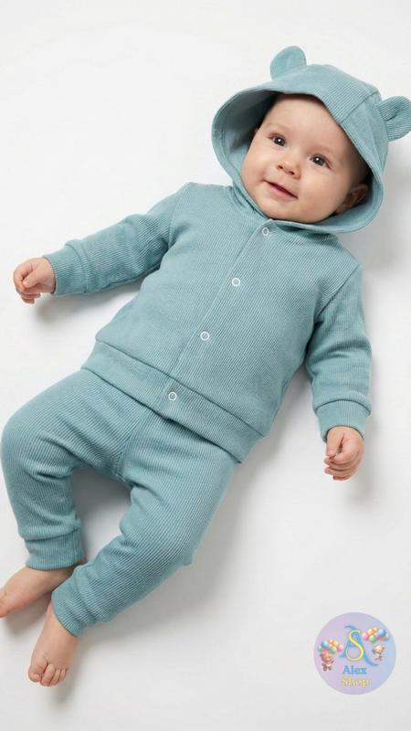 Ця кофтинка з капюшоном — просто любов з першого погляду! Ви тільки подивіться на ці милі вушка на капюшоні! Ця модель створена, щоб дарувати тепло та викликати посмішки. М'яка тканина в рубчик ніжно огортає малюка, а зручні ґудзики по всій довжині роблять процес перевдягання максимально швидким та комфортним. Ідеальний верхній шар для прогулянок у прохолодну погоду або як затишний домашній одяг. Розміри в наявності: 68, 74, 80 Тканина: м'який рубчик Пишіть у Дірект, щоб забрати цю красу для своєї малечі!