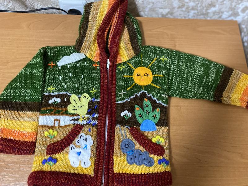 Розмір 86, дуже яскравий , зручний і теплий, є капюшон
