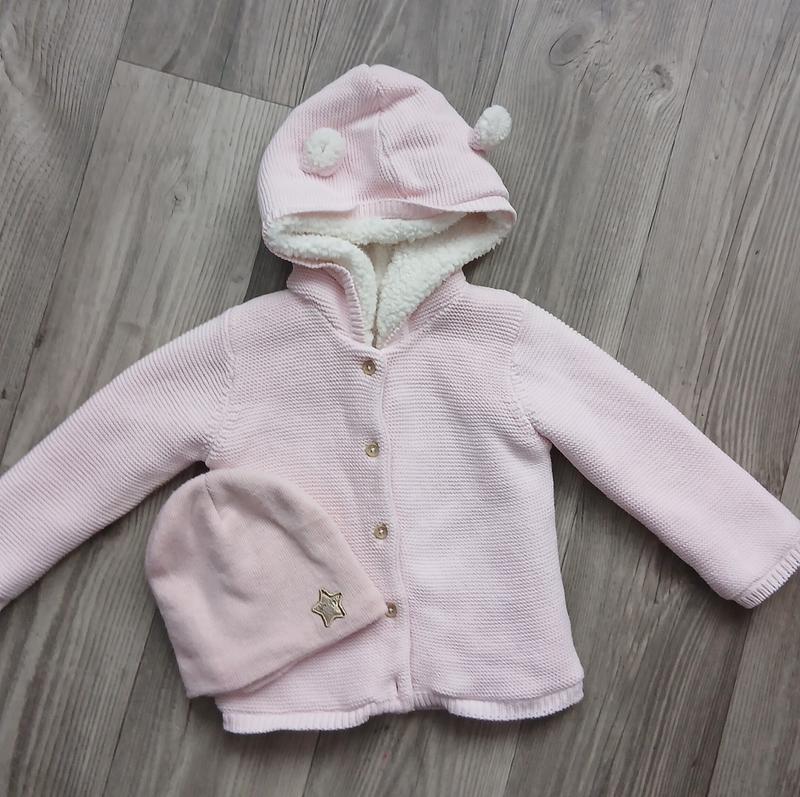 Теплая кофта на девочку+шапка