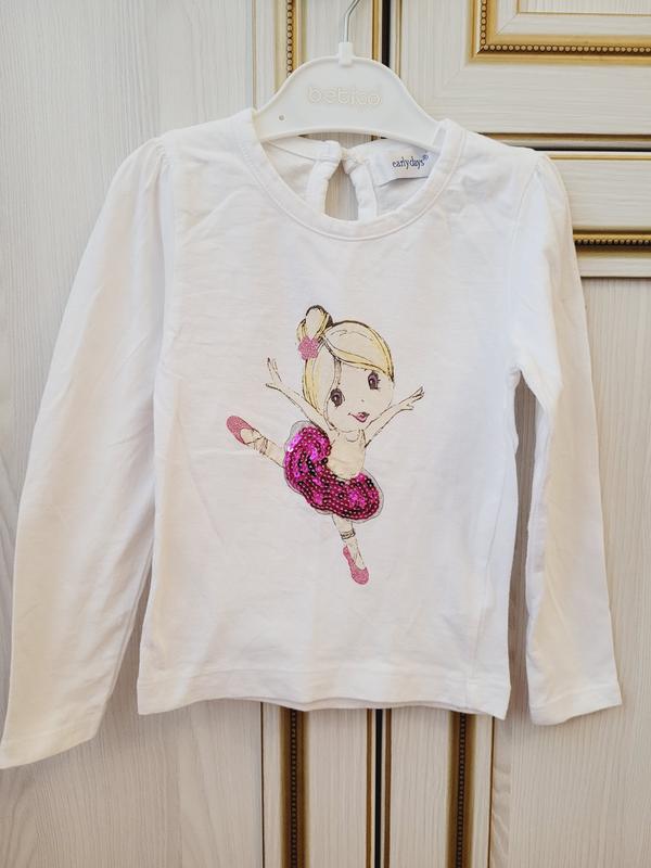 Кофточка белого цвета в идеальном состоянии для девочки. Милый рисунок с пайетками. Бутылочный и порваток не имеет. Застегивается на пуговицу.