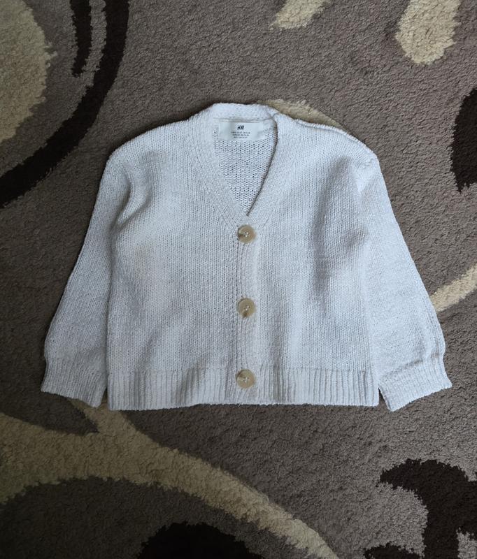 Молочная кофточка трендовый кардиган на пуговицах для девочки, крупная неплотная вязка. Очень стильно смотрится, дополнит множество весенне-летних образов. Фирма - H&M (коллекция 2025 года). Размер - 92 (1,5-2 года). Состав изображен на соответствующем фото. В идеальном состоянии.