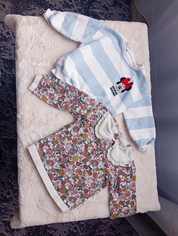 Набор из двух кофтинок, на кофточке из Мини есть маленькое пятнышко желтоватая, нажаль фото не передает, в носке не заметно,не ярко выражена (выводить не пробовала), кофточка с воротничком без недостатков. Размер 12-18 ( 86р) Замер при необходимости сделать.