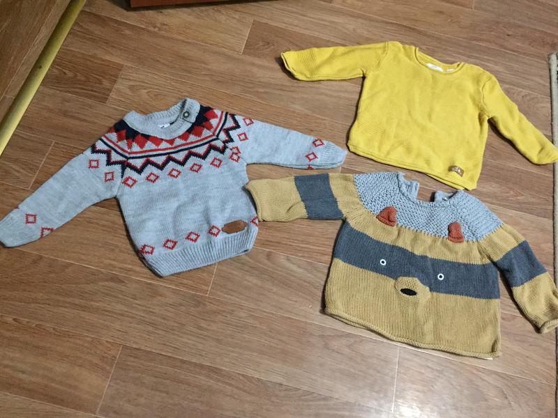 Тёплые свитерки Zara и next 300 грн за 3 единицы . Возраст 6-9 месяцев