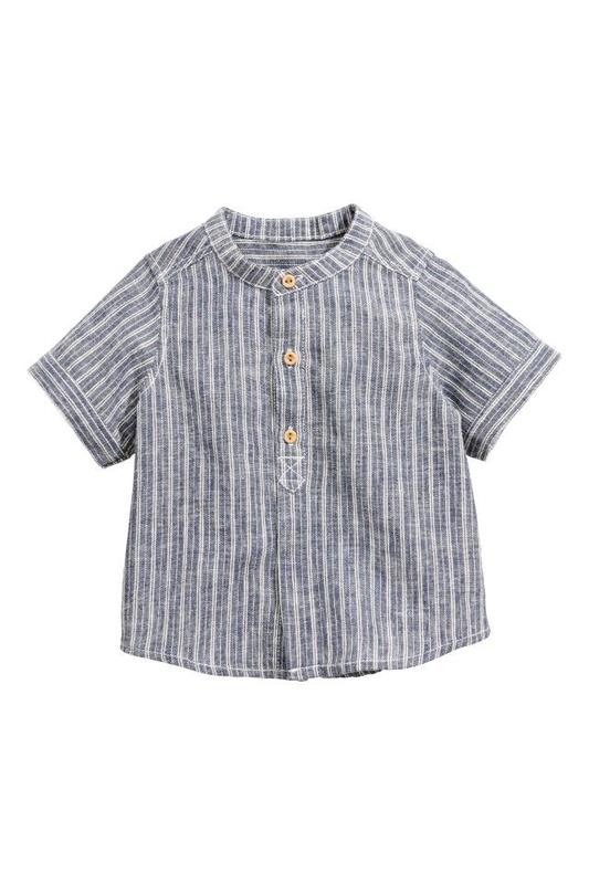 Рубашка из льна и хлопка H&M Отличное качество по отличной цене! ЭКСКЛЮЗИВНАЯ ЛИНИЯ ДЛЯ ДЕТЕЙ. Рубашка с коротким рукавом из мягкого материала из хлопка и льна. На рубашке воротник стойка и частично потайная застежка спереди. СОСТАВ Лен 52%; Хлопок 48% Состояние: новые с биркой. Цвет: синий в полоску. Размеры в наличии: 80, 86. Цена окончательная. 86: Длина от плеча вниз 36,5 Ширина плеч 24 ПОГ 31,6