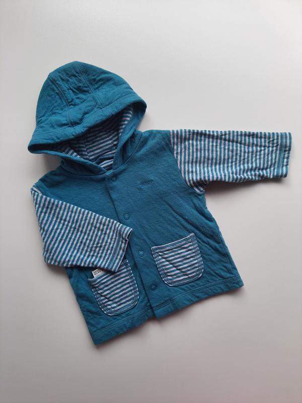 На тонкой трикотажной подкладке Общая длина - 29,5 см Ширина - 26,5 см Длина рукава - 19,5 см Размер на бирке - 3-6 мес Состав : 100% Соtton
