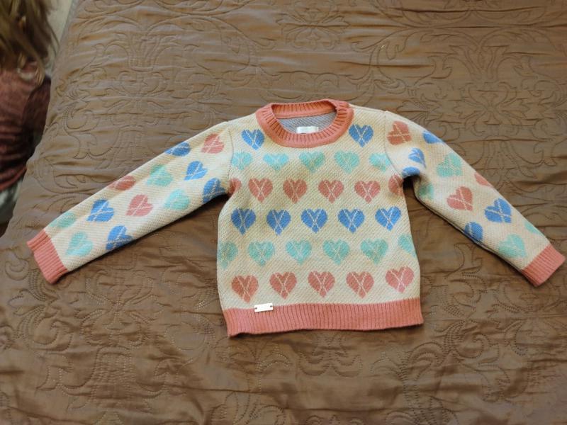 Свитер очень тёплый для девочки, состояние отличное, нет катушек, пятен и не порван. Размер пишется на год, но мы носили до 2-х лет.