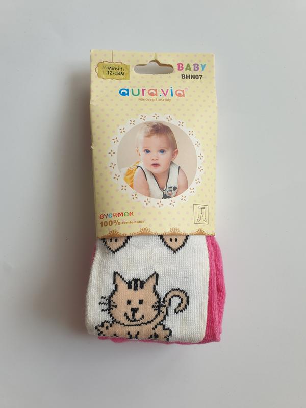 Колготки Aura via 12-18 месяцев. Составляющий: 90% хлопок, 5% полиамид, 5% эластин. Новые, единственное на сгибах чуточку пожелтели, но возможно отперется.