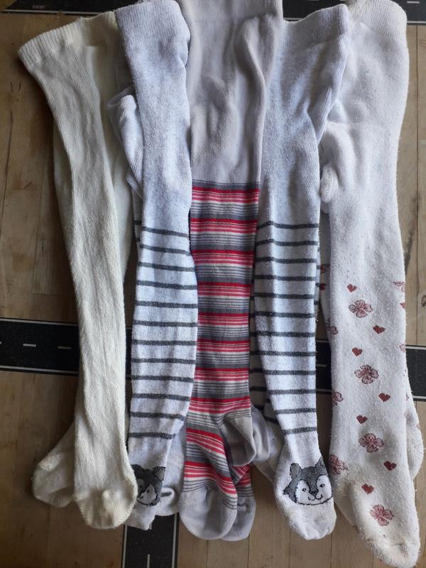 5 пар дитячих колготок. На розмір 74см. Одні молочного кольору - ажурні (фото 2). Троє звичайних. Останні теплі махрові (3, 4, 5 фото). Усі колготки в задовільному стані. Демісезонні - 1 пара колгот 25 грн Махрові або ажурні 30 грн за пару 5 пар колгот - 100 грн.