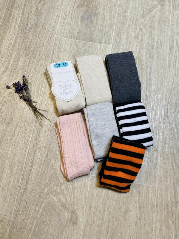 Трикотажні колготи для дівчинки 6-12 місяців від бренду Primark. В наявності: - бежеві- 2 шт (6-12 місяців) - рожеві в рубчик малюнок (6-12 місяців) - темно-сірі (6-12 місяців) - світло-сірі (6-12 місяців) - малинові (6-12 місяців) - бардові (6-12 місяців) - в риску чорно-білу (80 см) -в риску поморанчево-чорну (80 см) Тканина: 72% бавовна, 26% поліестер, 2% еластан. Доставка в межах міста Одеса безкоштовно на замовлення від 300 грн.