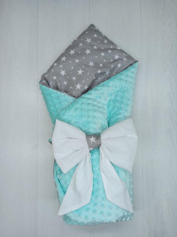 Конверт- плед со съёмным утеплителем на молнии, нарядный бант на резинке, ткань плюш + польский хлопок 100%