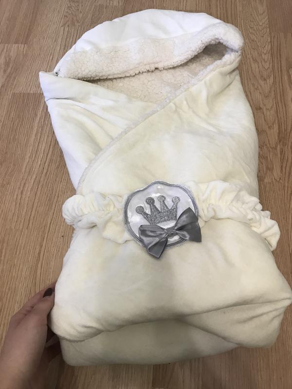 Кокон из овчины, капюшон отстегивается, очень теплое и мягкое