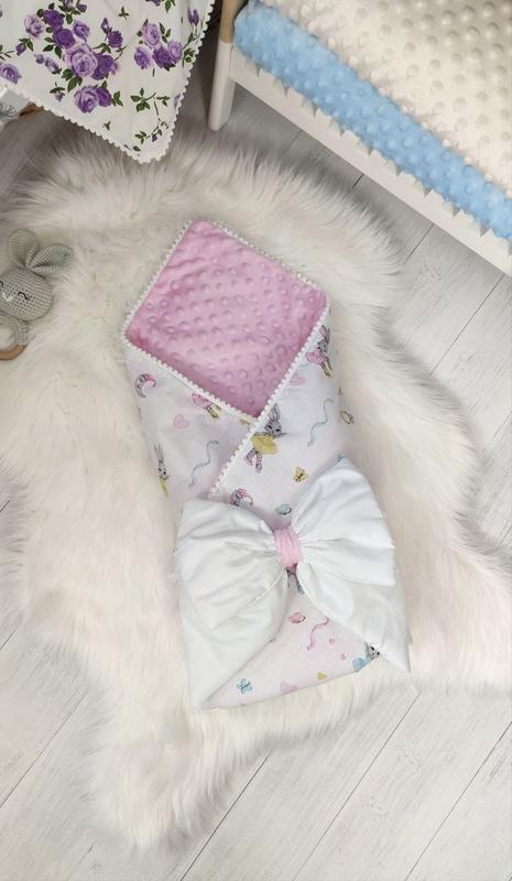 Найпопулярніші плюшеві конверти на виписку для новонароджених. Преміум Класу! Двосторонній - можна використовувати за бажанням будь-яку зі сторін. Розмір-80см*80 см Ідеальний розмір, підходить для використання надалі в ліжечко або коляску. Тканини-поєднання плюшу з польською бавовною-безпрограшний варіант. Плед-конвертик- на блискавці; Наповнювач-знімний; Фіксується бант-резинкою