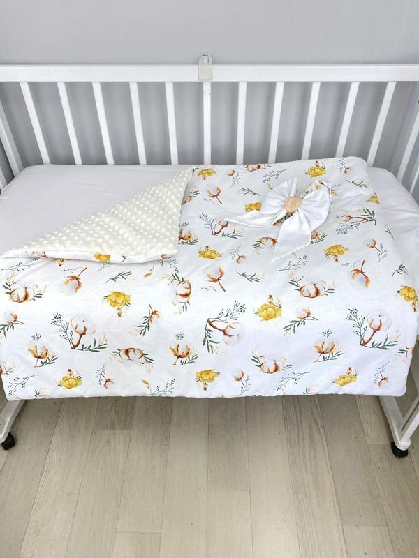 Одеяло-конверт со съемным утеплителем (внутри утеплитель в чехле), с обратной стороны нежный плюш. Тканина бавовна. Размер пледа 100х80 Бантик на резинке, чтобы использовать как конверт на выписку в комплекте.