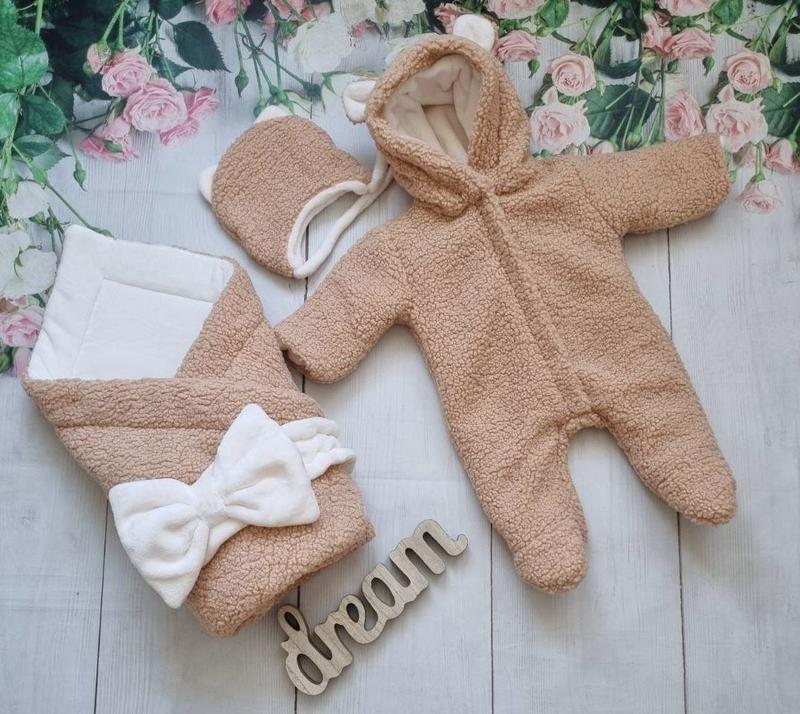 НОВИНКА 🐻 Комбинезон + шапка + конверт одеяло Комбинезон: Размер универсальный от рождения до 4 месяцев Ручка открывается Комбинезон на молнии, которая закрывается планкой. Ткань - Тедди Наполнитель- силикон Подкладка - мягкая махра Конверт : Размер 80*80 Ткань Тедди Наполнитель - силикон Подкладка - мягкая махра Бант на резинке Конверт можно использовать как на выписку так и как плед для прогулки Сезон : Деми и Зима (на выбор ) Возможно отдельно конверт и комбинезон Конверт 780💕 Комбез 1000💕 Комплект 1640 💕