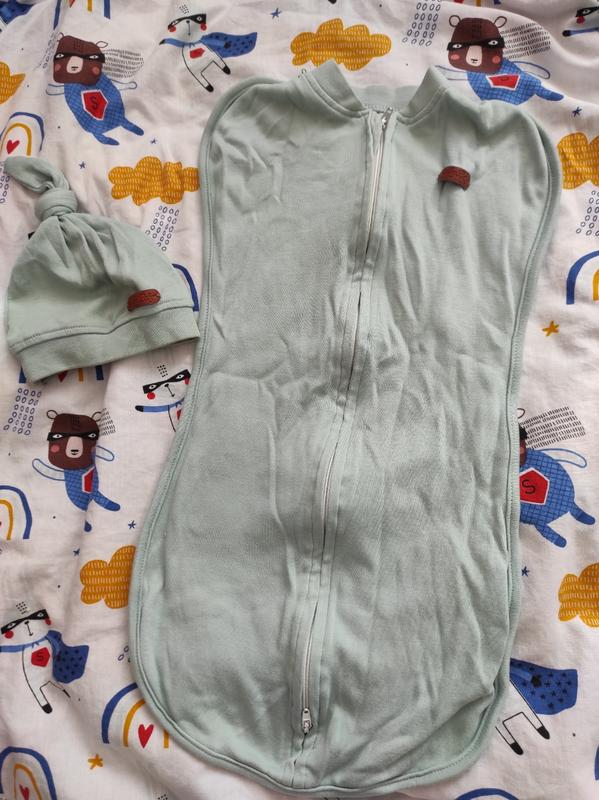 Комплект шапочка, с регулировкой, можно завязать на любую голову и кокон, чтобы ребеночка не будила себя ручками.