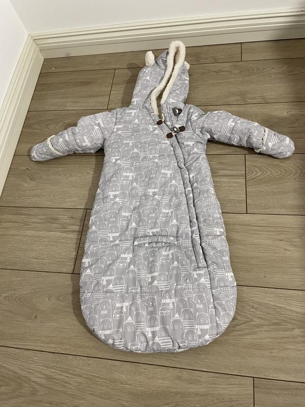 Длина 75 Размер 80 Пог 32 Пот 37 Низ ширина 39 Рукав 35 Плечи 26 Конверт / комбинезон Можно использовать в автокресло, есть вырез для крепления ремней безопасности Конверт комбинезон, который можно использовать в автокресло