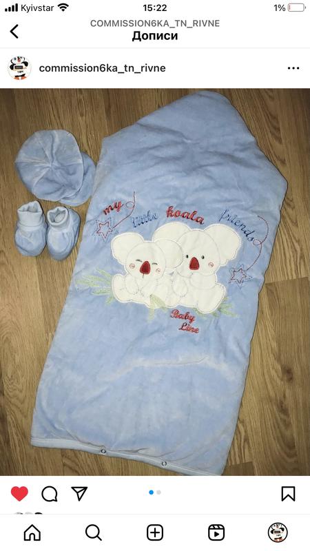 Суперовый, совершенно новый, конверт- плед на выписку, материал - качественный велюр. Конвертик транформируется с помощью молнии в пледик. В комплекте идет шапочка-капчик и пинетки.