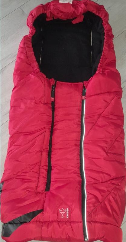 Фірмовий теплий конверт Kaiser підійде в коляску для маленьких,а для старших діток в санчата, зверху якісна плащівка,яка не пропускає вологу та захищає від вітру, середина на флісі. На спинці вшиті антислизькі вставки, конверт оснащений світловідбивними стрічками. Колір насичено червоний,виробник Німеччина.Стан хороший