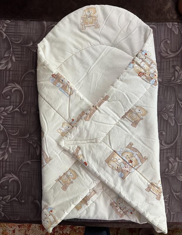 Конверт после одного ребенка, покупали в Европе. Рисунок подойдет и мальчику и девочке, ненавязчивый. Крепится на липучке. Сезон весна-лето. Также можно использовать как плед. Состояние идеальное.