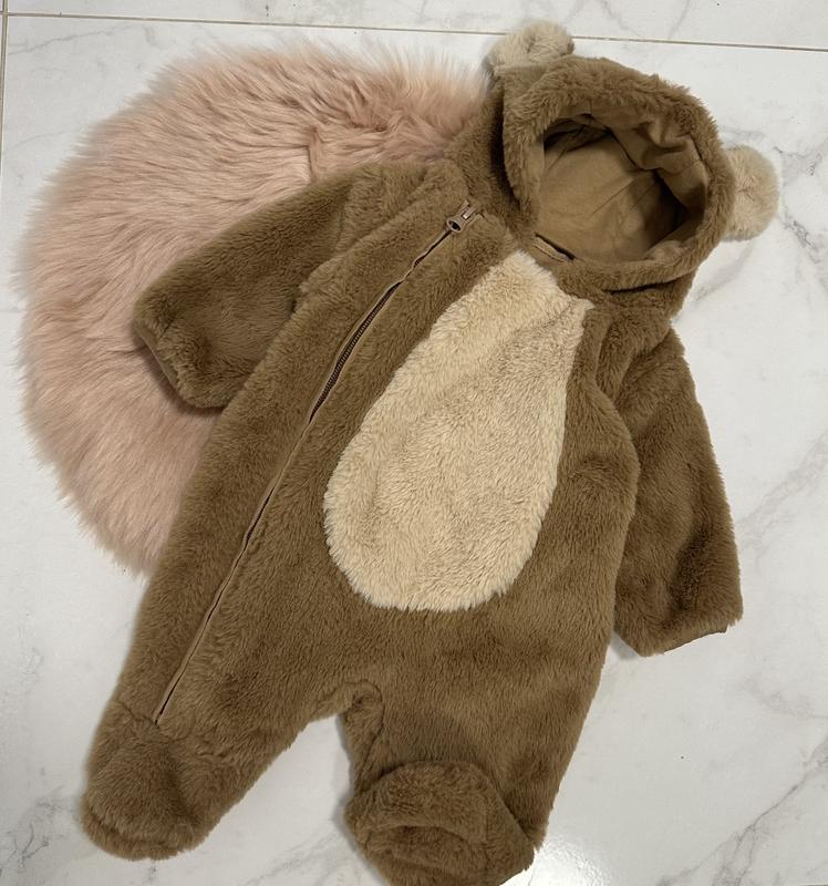 Классный плюшевый комбинезон m&s на 0-1 мес, на молнии, с ушками, состояние идеальное