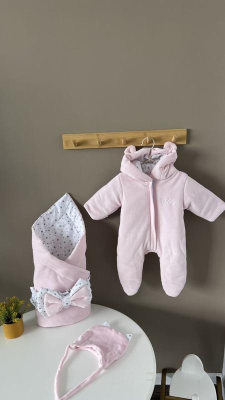 Конверт - одеяло + комбинезон + шапочка Комбинезон: Размер универсальный 56-62 рост В комплекте с шапочкой Тканина велюр 100% бавовна Наполнитель- силикон ( демисезон, лето или зима) Конверт : Размер 80:80см Тканина велюр + Бавовна 100% Бантик на резинке Можно использовать как конверт на выписку так и как одеяло Конверт 675 грн Комбінезон 790грн Комплект 1340 грн