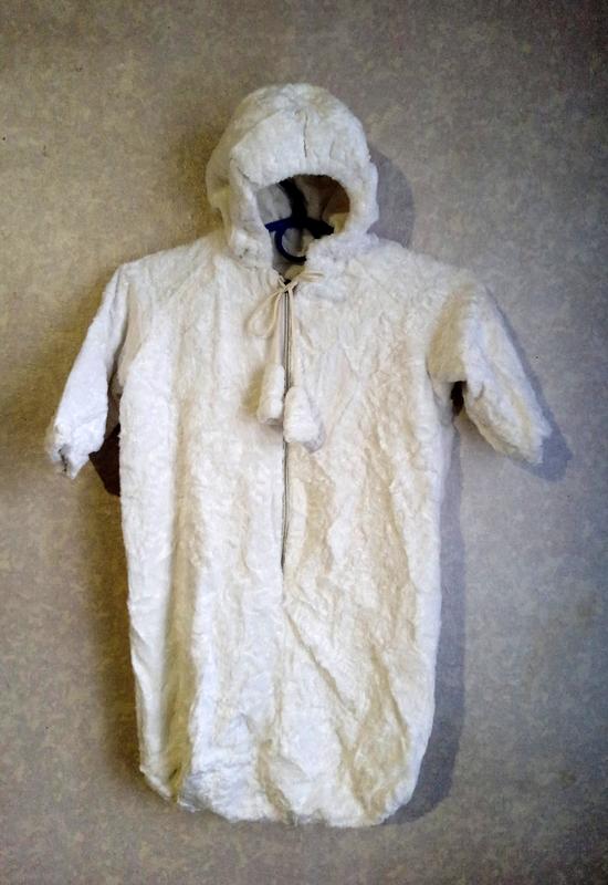 Конверт велюровый, белоснежный, двойной. Сверху плотный велюр, с середины флис. Требуется замены бегунка, бегунок застёгивается, но нет хлястика на бегунка. На возраст 1-3 месяца. Замеры: высота 63 см., ширина 41 см.