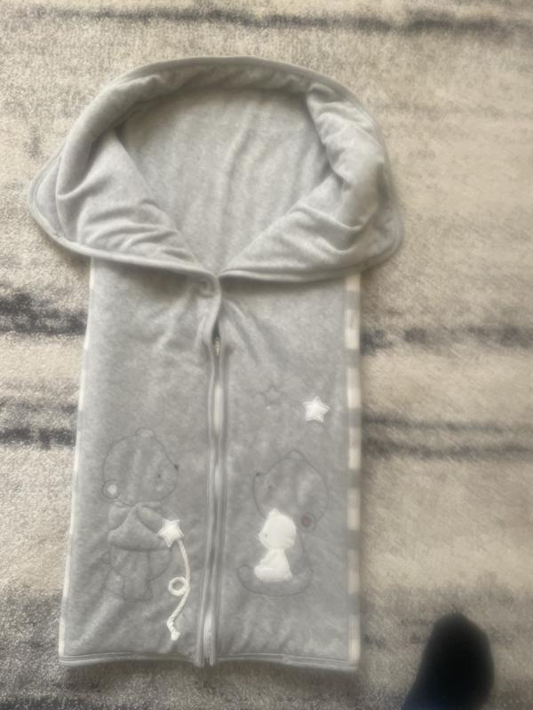 Конверт детский, серого цвета с аппликацией. Застежка на молнии и кнопках