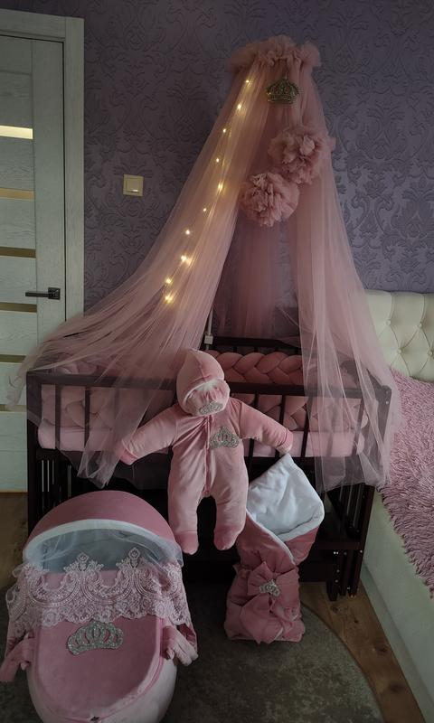 Шикарный набор для маленькой принцессы: - балдахин с двумя пампонами и креплением -люк-переноска (с матрасиком, одиалком и подушкой) -конверт-одеяло с бантом на резинке - комбинезон 0-4 мес + шапочка. Ткань велюр плющ, подкладка -флис, утеплитель холлофайбер. Стан нового. Есть коробка, которая сэкономит стоимость доставки.