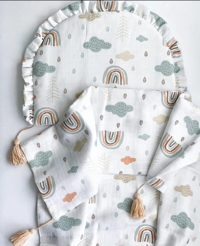 Набор в коляску подушка и плед из муслина.
