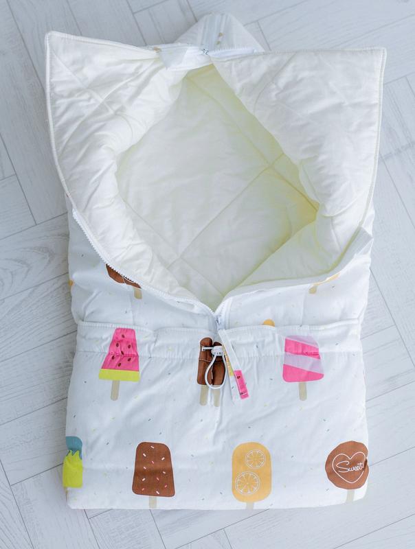 Для наймолодших діток конвертик на виписку чи для прогулянок, для солодкого сну у візочку. Його можна взяти із собою у дорогу, у подорож, куди б ви не відправились з дитинкою НА ВИПИСКУ З ПОЛОГОВОГО Адже це перший одяг вашої дитини, перше, в чому його побачать ваша родина і друзі НА ПРОГУЛЯНКУ Вдягнути дитину у такий конверт досить легко і просто. А на прогулянці ваша дитина буде в ньому найгарніша ДЛЯ СОЛОДКОГО СНУ ВДОМА Як бачите, конвертик повністю розстібається в ковдру, в якому дуже комфортно засинати вдома у ліжечку. Конвертик замінює спальний мішок, який не так вже і просто скинути ніжками, як це зазвичай буває зі звичайною ковдрою 100% бавовна, сатин Утеплювач- синтепон Температурний режим +8°...+20°С Конверт- трансформер, отже повністю розстібається в ковдру Розміри при повному розкритті 78*88см Кожна блискавка прикрита захисною стрічкою Також є кнопки для фіксації кутів конверта
