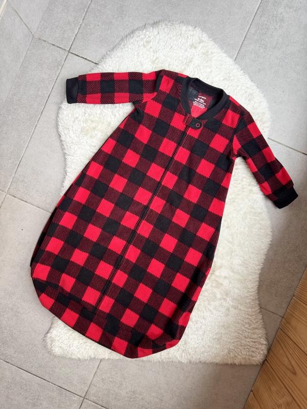 Конверт спальник пижама одело человечек флисовый теплый в клетку клетку красный новогодний carters размер 74