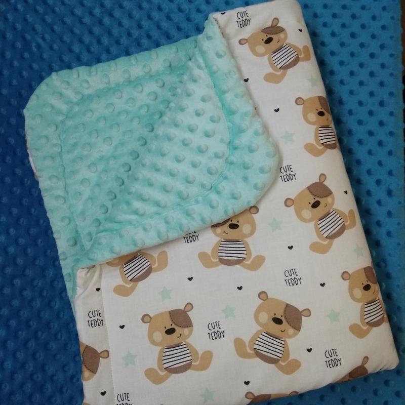 Тепленький плед из нежного плюша и хлопка, утеплён синтепоном. Размер 95*77 см. Может быть одеялком в кроватку, в коляску, а можно сложить как конверт на выписку. Ткань гипоаллергенна, а значит не вызывает раздражения, аллергию и прочие неприятные ощущения при контакте с кожей малыша. Пелёнка хлопковая 80*100.