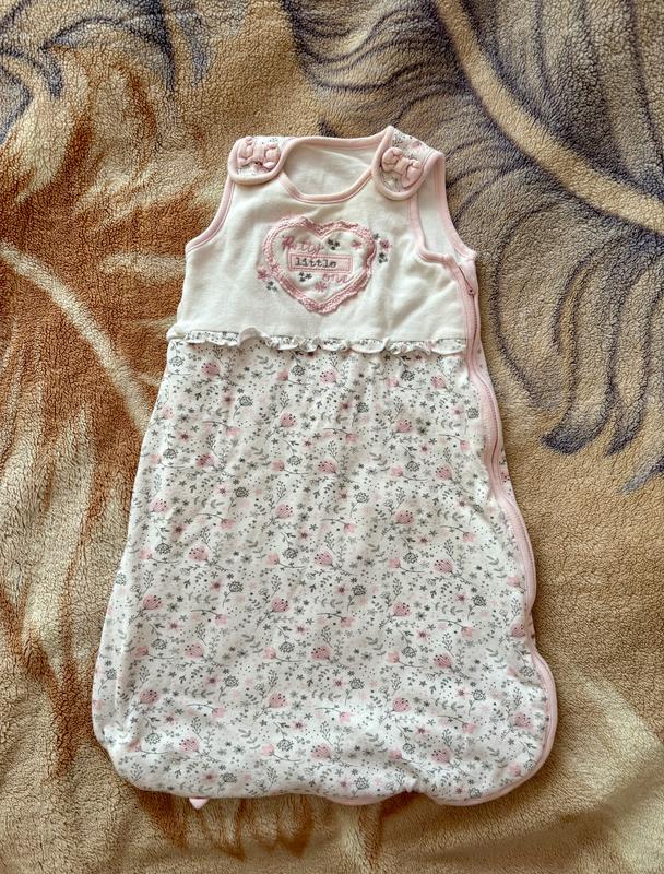 Зручний і теплий спальний мішок для немовлят віком від 0 до 6 місяців (зріст до 70 см). Ідеальний варіант для комфортного та безпечного сну без ковдр. 2.5 TOG — підходить для прохолодних кімнат (приблизно +16…20°C) Застібка: зручна блискавка збоку + кнопки на плечах 🌿 У відмінному стані, без плям і пошкоджень. Після одного малюка, випраний у гіпоалергенному засобі.