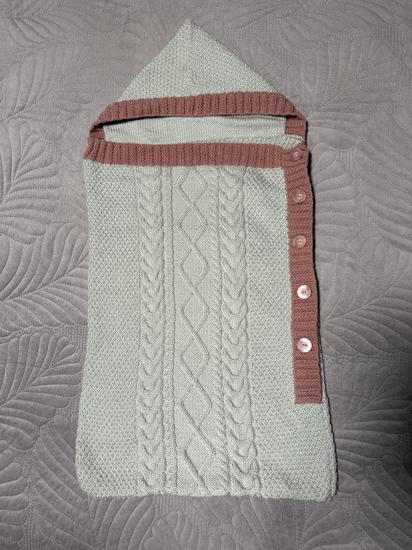Надзвичайно теплий і мʼякий вʼязаний конверт стане ідеальним вибором для прогулянок із малюком Виконаний з натуральних матеріалів, цей конверт забезпечує комфорт і захист вашій дитині. • Матеріал: вʼязаний бавовняний матеріал. • Дизайн: Витончений візерунок і капюшон із помпоном додають особливого шарму. • Практичність: Зручна застібка дозволяє легко вкутувати дитину та забезпечує швидкий доступ у разі потреби. Цей конверт - ідеальне поєднання стилю, тепла та практичності, яке подарує комфорт вашому малюкові та спокій батькам. Склад: 55% Бавовна 45% Акрил
