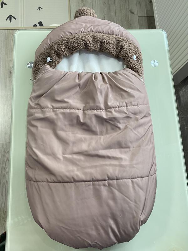 Гарний конверт кокон зимовий на флісі з помпоном, кольору мокко з непродувної тканини-плащівка, рожевий для новонароджених від 0 до 6 міс. (56-68) Конверт-кокон для новонароджених немовлят складається із двох частин. По краях йдуть дві змійки, завдяки чому дитину можна дістати з чохла, навіть якщо вона заснула під час прогулянки. Передня частина конверта повністю знімається. Зовнішня частина зимового конверту-кокона для новонароджених малюків виконана з якісної водонепроникної плащової тканини, вона відштовхує вологу і бруд, легко миється і не продувається, наповнювач - синтепон, підкладка фліс. Конверт кокон має утеплювач силіконізований синтепон 400 г м.кв. Підкладка із флісу.