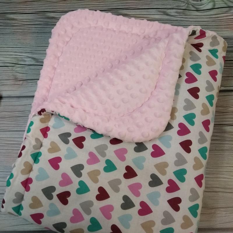 Тепленький плед из нежного плюша и хлопка, утеплён синтепоном. Размер 95*77 см. Может быть одеялком в кроватку, в коляску, а можно сложить как конверт на выписку. Ткань гипоаллергенна, а значит не вызывает раздражения, аллергию и прочие неприятные ощущения при контакте с кожей малыша. Пелёнка хлопковая 80*100.