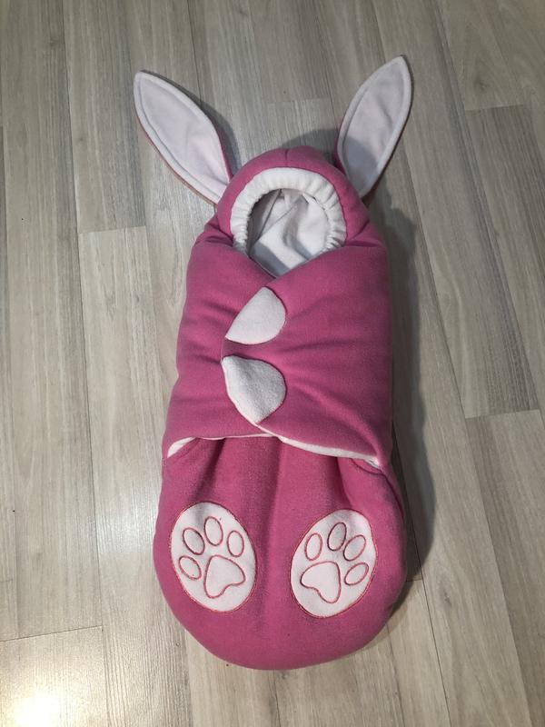 Гарний, рожевий зимовий конверт Зайка на виписку, дуже теплий (фліс + синтепон), шапочка до 38см також тепла флісова з наповнювачем, стан майже новий разів 5 виносили на руках на вулицю Кокон Довжина всередині 65см, по спині зовні 67см Ширина всередині 33см, зовні 35см Шапочка Ширина посередині 18см Ширина по краю біля завʼязок 21см Висота спереду 12,5см Висота позаду 17см