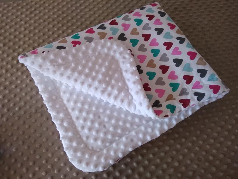 Тепленький плед из нежного плюша и хлопка, утеплён синтепоном. Размер 95*77 см. Можно использовать как одеялко в кроватку, в коляску, а можно сложить как конверт на выписку. Ткань гипоаллергенна, а значит не вызывает раздражения, аллергию и прочие неприятные ощущения при контакте с кожей малыша.
