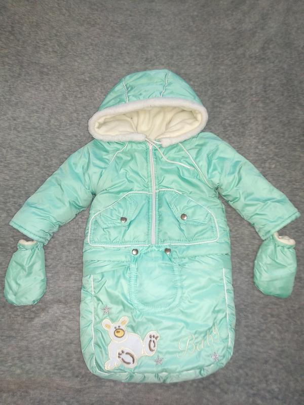 Детский зимний комбинезон-трансформер, куртка+штаны комбинезон+мешочек С рождения можно использовать как теплый конверт-мешок для выписки из роддома и прогулок в коляске, а на следующий год- как куртку и штанишки-комбез. В комплекте рукавички. Комбезик выглядит стильно, с утепленным вшитым капюшоном. Курточка, штанишки и мешочек от 0 до 2 лет Водонепроницаемая плащевка Курточка и мешочек на меху Штанишки: холлофайбер + флис