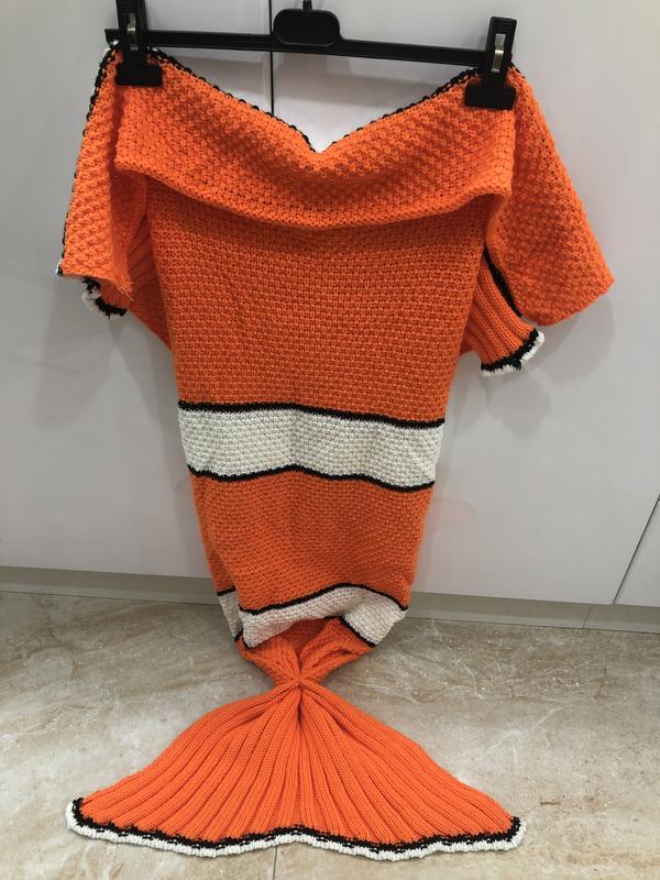 Вязанный плед . Рыбка немо