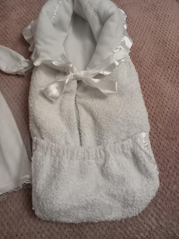 конверт теплий флісовий,може бути як коцик+платтячко 0-3місяці оберайте будь який пакет одягу в подарунок
