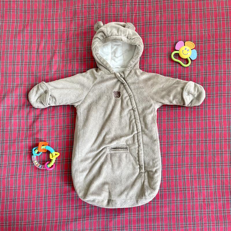 Замечательная во всех отношениях штука! Тёплый, мягкий, удобный конверт-комбез на молнии. Очень быстро, без криков и нервов можно одеть малыша. Ручки можно открывать-закрывать, ножкам свобода) До месяца-двух можно не продевать ручки в рукава, использовать как конверт, мы так делали. Картерс как-то сильно любят детей, делая такие комфортные для обоих сторон штуки. Есть немного катышек на внутренней части подкладки, но они легко убираются, в остальном состоянии очень хорошее. Размер от 0 до 6 месяцев.