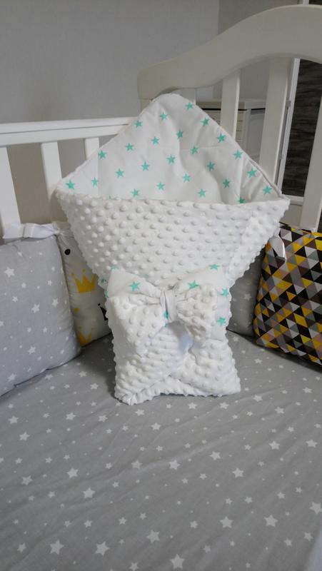 Уютный плед конверт с нежным мягким плюшем🤗 Размер 85*85. Выполнен из высококачественных материалов 100 %хлопок плюш минки наполнитель синтепон плотность 150 👌. В комплект входит плед и бант на резинке 🎀 Возможен заказ пледа без утеплителя в другом размере или цвете 🌸 Производство Украина 🇺🇦