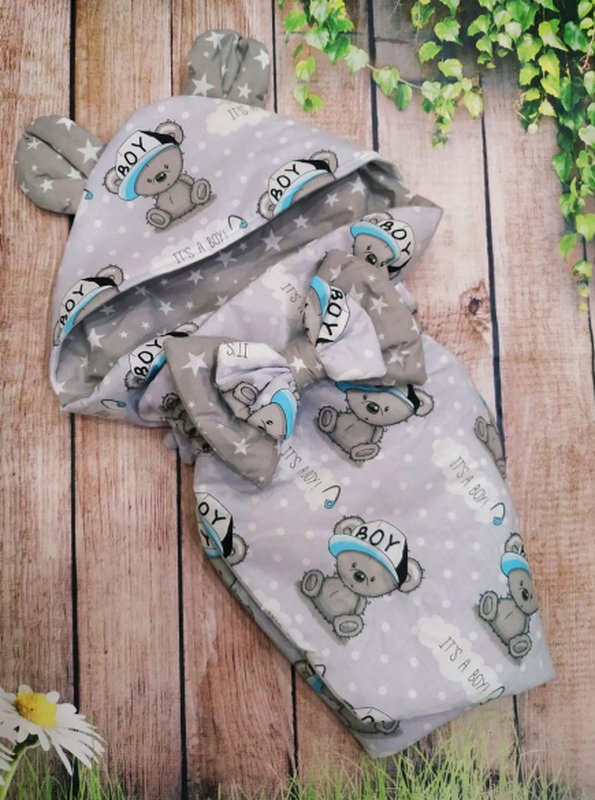 Конверт- одеяло на выписку хлопковый, с ушками разные цвета (уточняйте перед заказом, более 30 расцветок!) Размер готового изделия 78*78 см, бант на резинке. Материал основы и подклада - хлопок, польская бязь Наполнитель деми - синтепон плотностью 200 г/м2 толщиной 2 см Наполнитель зима - синтепон плотностью 400 г/м2 толщиной 4 см Наполнитель лето - синтепон плотностью 80 г/м2 толщиной 0,8 см или без наполнителя Трансформируется в плед, удобно использовать в коляске на прогулках