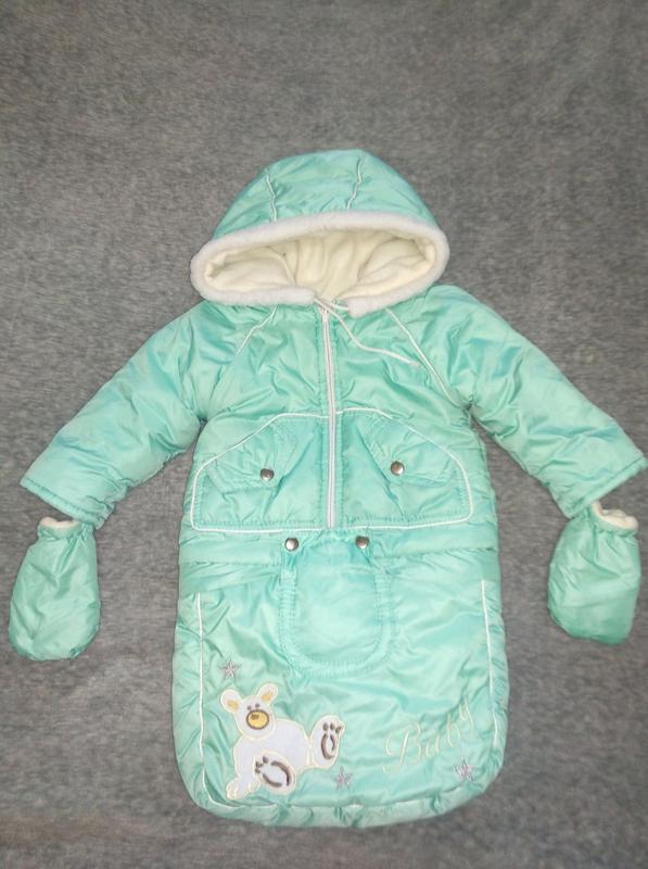 Детский зимний комбинезон-трансформер, куртка+штаны комбинезон+мешочек С рождения можно использовать как теплый конверт-мешок для выписки из роддома и прогулок в коляске, а на следующий год- как куртку и штанишки-комбез. В комплекте рукавички. Комбезик выглядит стильно, с утепленным вшитым капюшоном. Курточка, штанишки и мешочек от 0 до 2 лет Водонепроницаемая плащевка Курточка и мешочек на меху Штанишки: холлофайбер + флис