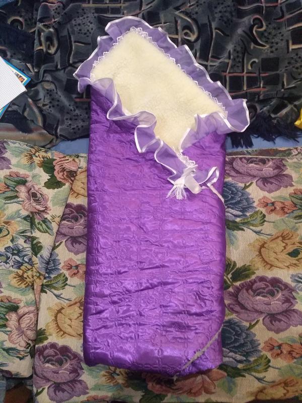 Тёплый конверт, внутри овчина, можно использовать как одеяло.