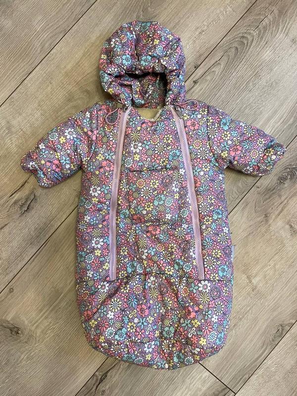 Зимний комбинезон на овчине В идеальном состоянии, одевали несколько раз Длина от плеча до ног - 57 см (подходит для ребенка ростом до 70 см)