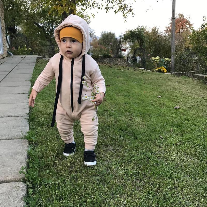 Отличный универсальный ромпер бежевого цвета. ▪️74 см; ▪️долж - 63 см, шаг- 24 см; рукав от плеча - 21 см; ▪️состояние: отличное (на одной штанишки есть маленький пятно, которое при носке незаметно). 🏷Цена: 400 грн.