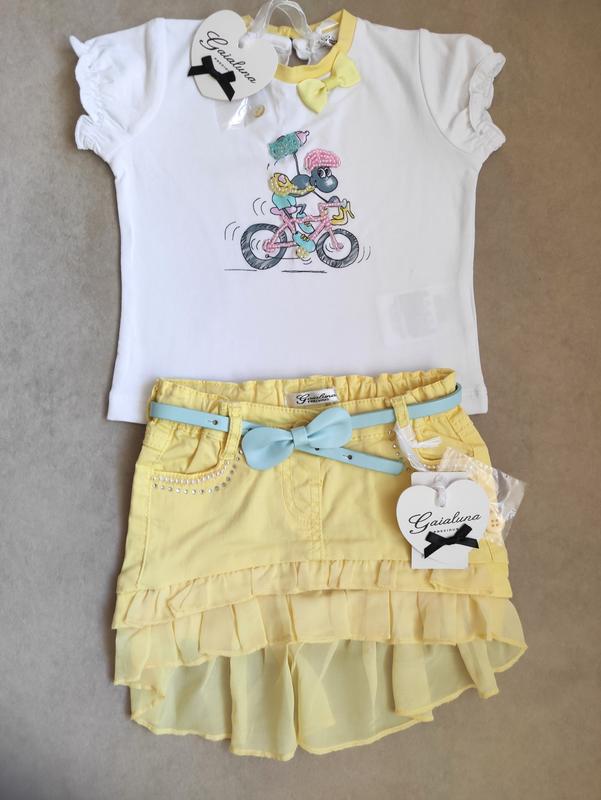 Стильний якісний костюмчик на маленьку модницю 6-9 місяців: футболка та юбка. 100% бавовна, ідеальний пошив, виробництво Італія.
