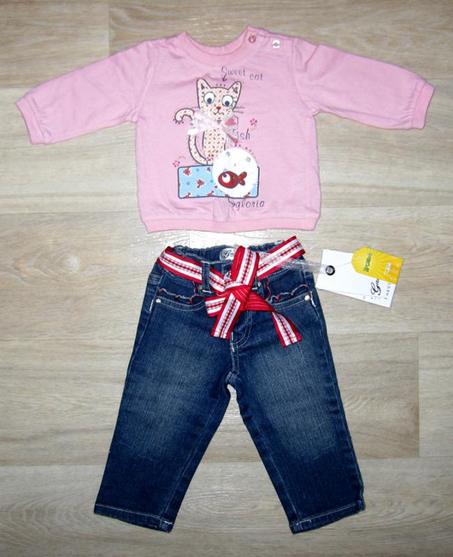 Фирменный комплект джинсы джемпер размер 6 месяцев оригинал камешки сваровски сверкают)